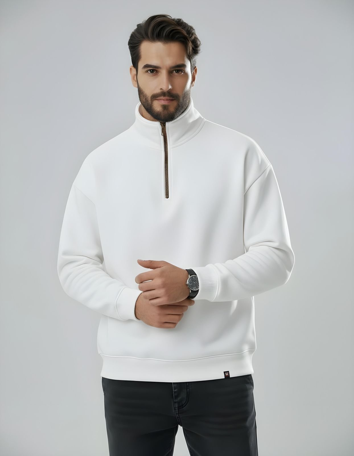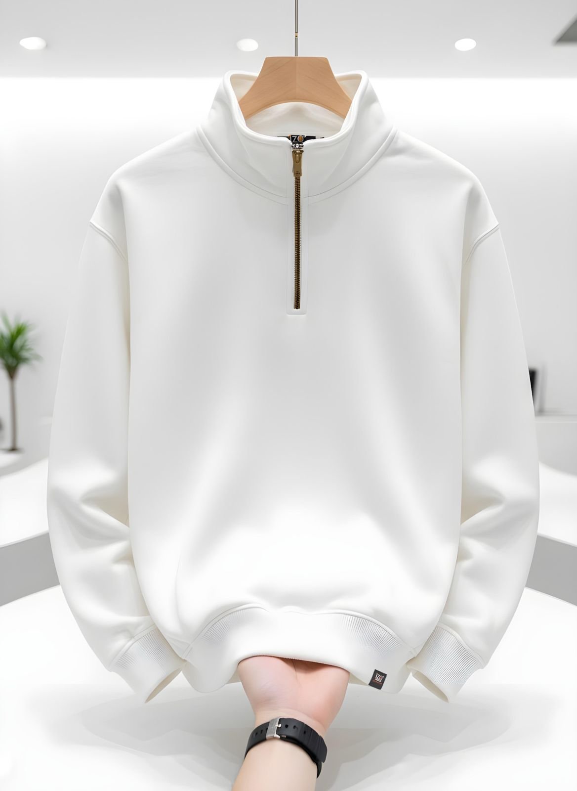 الرئيسية » المنتجات » Half Zip Sweatshirt White – Heavy Cotton | IZO Store